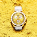 Referencing the vast desert sands that cover more than a fifth of the Earth's surface, this chronograph features a light gray-beige palette. A unique detail on the subdials pays homage to the Speedmaster Alaska II and III projects, as well as the first watch on the Moon.