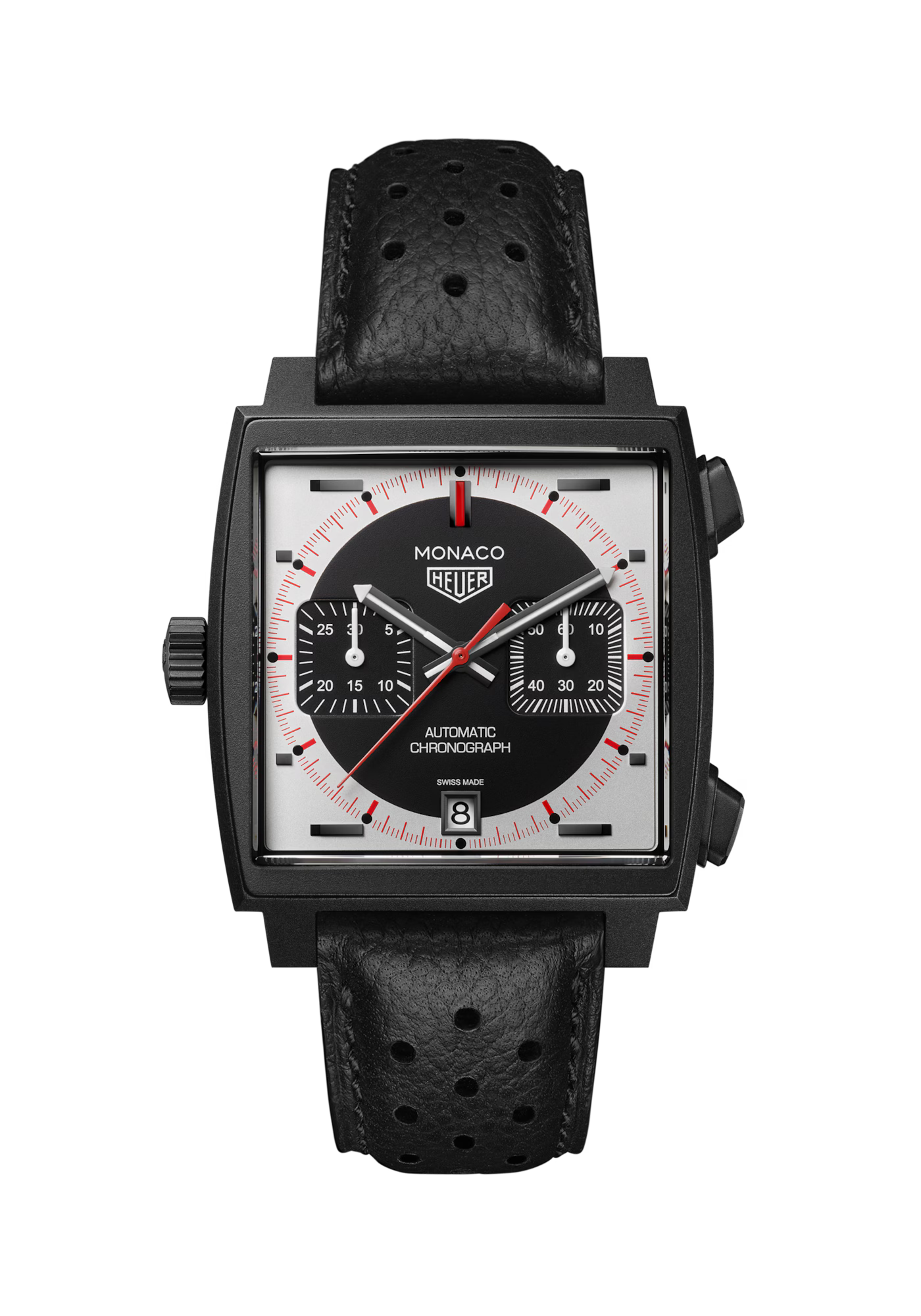 Paying homage to the rare and mythical all-black Monaco of the 70s, this TAG Heuer Monaco Special Edition is a must have for connoisseurs. A fiercely elegant 39mm black DLC titanium case, houses the indomitable manufacture Calibre TH20-00.