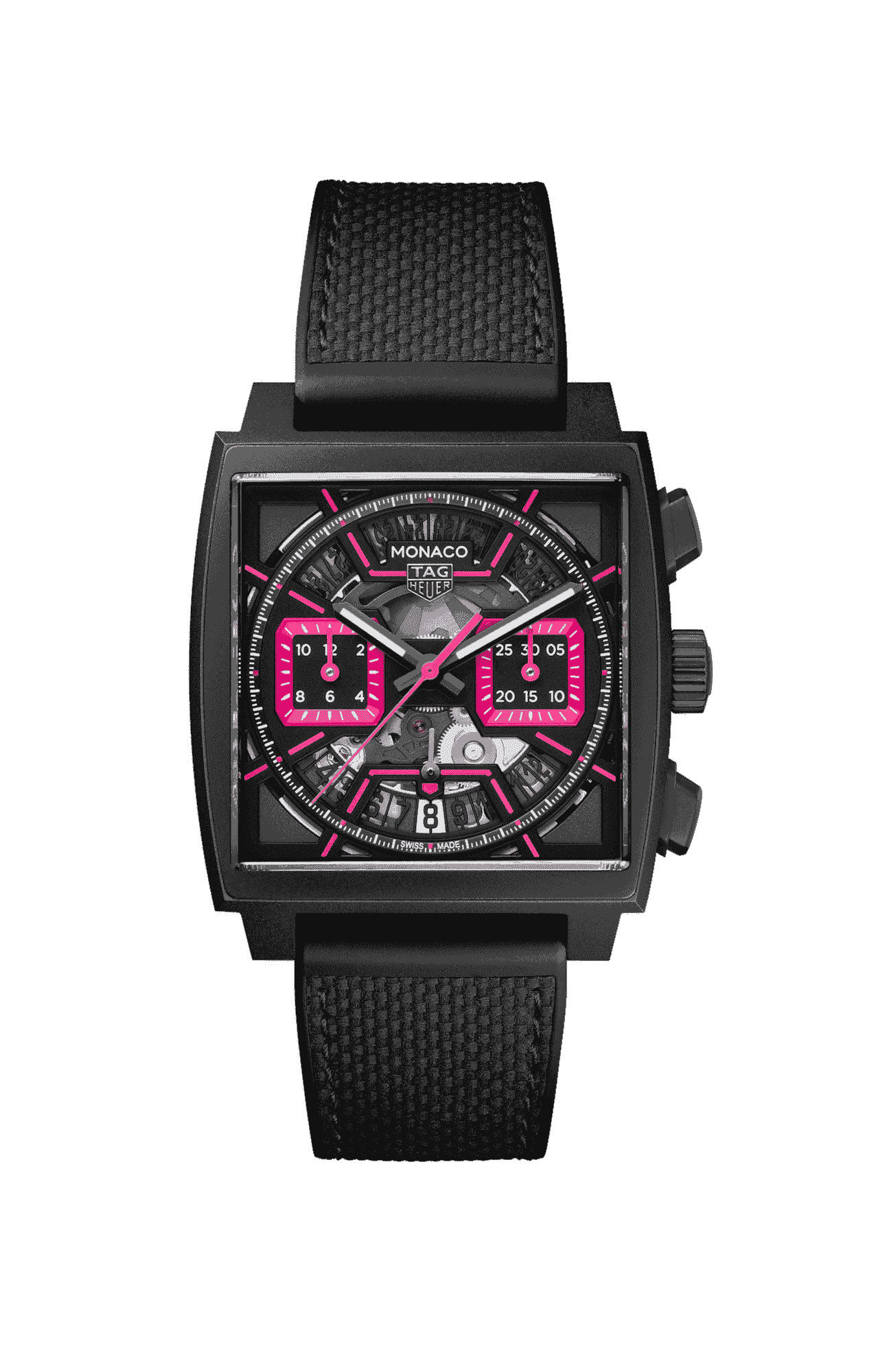 Embrace the thrill of the race with this dark blue TAG Heuer Monaco. A modern reinterpretation of an iconic design, this timepiece combines a bold blue and yellow palette with a contemporary skeleton dial—A fiercely charismatic icon.