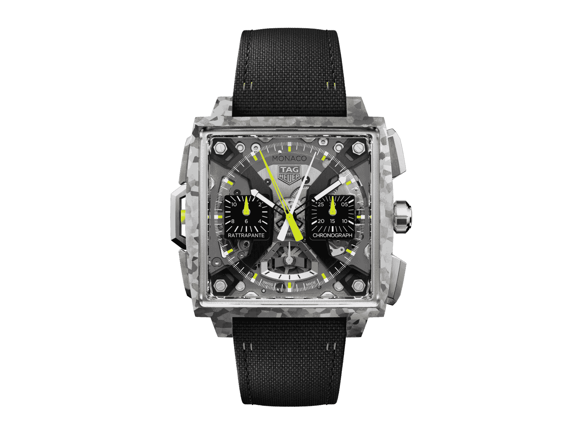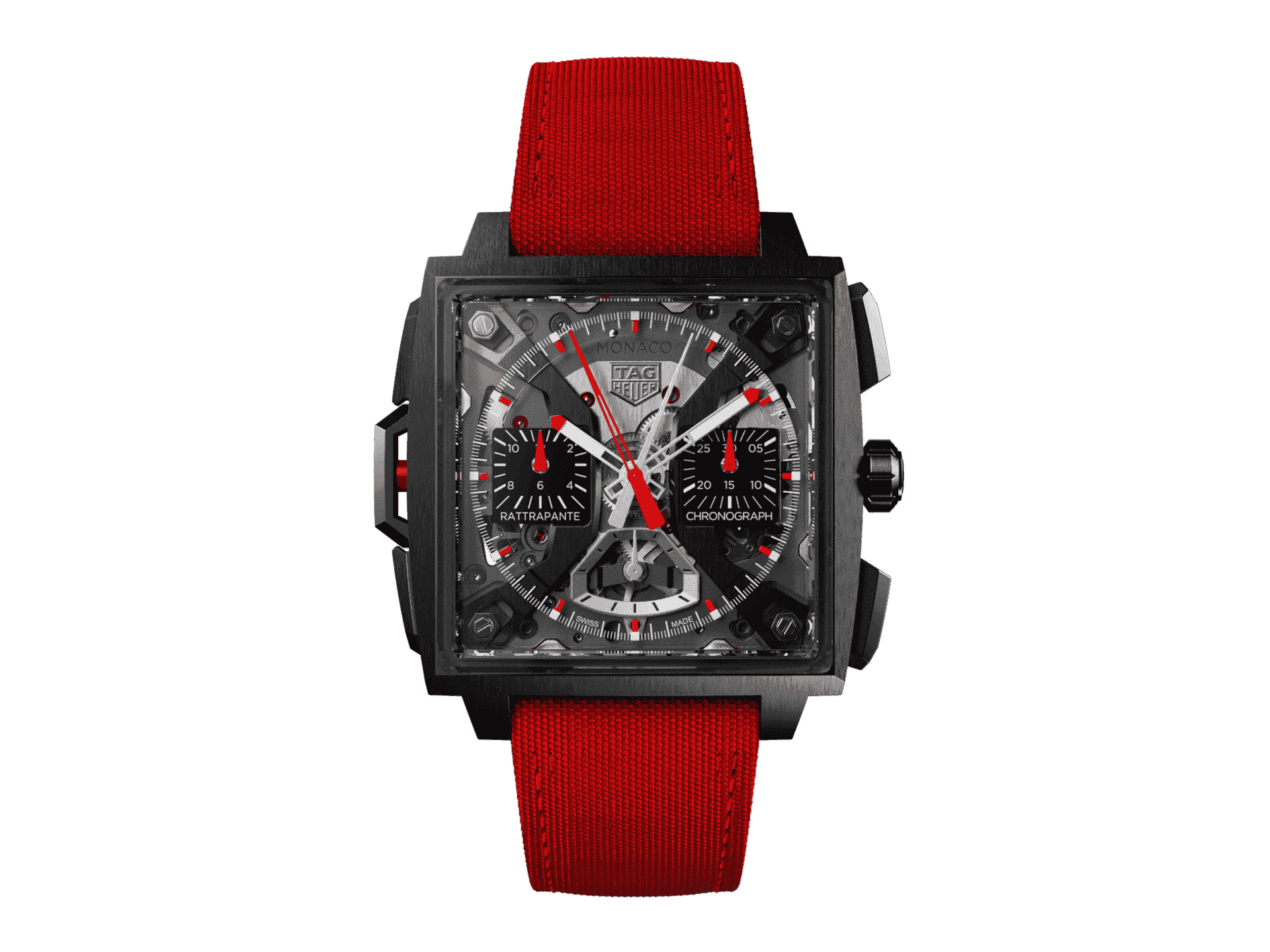 Exceptional in every detail, the TAG Heuer Monaco Split-Seconds Chronograph blends innovation and traditional craftsmanship inspired by the precision and speed of motor racing. Featuring a texturized TH-Titanium case, this timepiece stands as a testament to the Swiss Maison’s innovative DNA.