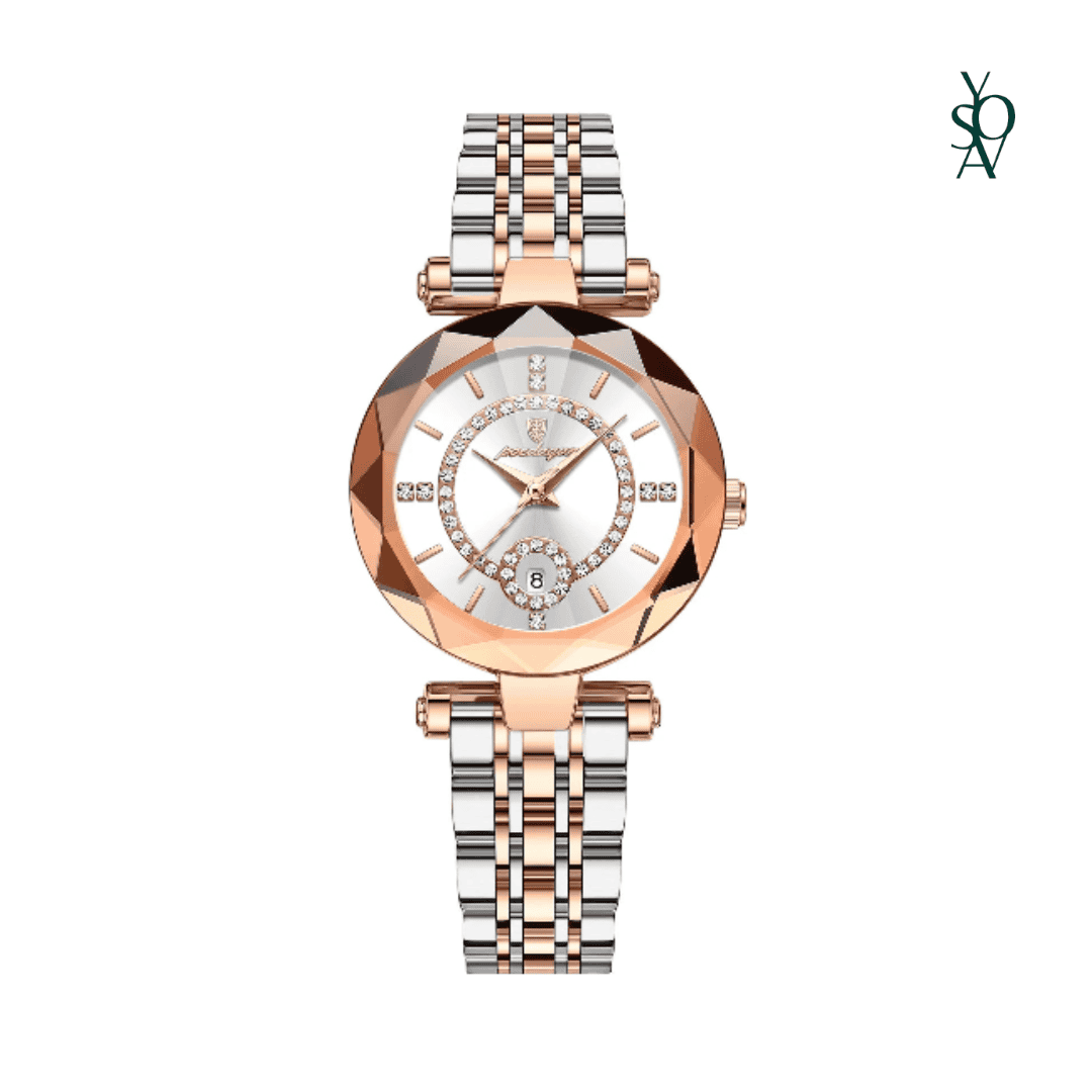 Experience timeless elegance with this exquisite timepiece. Featuring a radiant red dial embellished with sparkling stones, this watch exudes sophistication and charm. The bi-tone bracelet effortlessly combines luxury and style, making it a perfect accessory for any occasion. Elevate your wristwear collection with this stunning masterpiece.